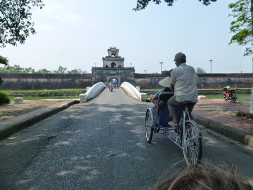 Today we took a very short plane ride to Hue (pronounced hue- way). Then a driver came to pick us up and take us to the hotel. Once we finally reached the hotel room we were exhausted, but after putting everything away we went out for lunch and to go to the citadel. What is the citadel you may ask??? Well, it is a place where in the olden days was the Emperors palace cool right??? Well anyways we started walking to the citadel when I had the idea to take cyclos (cyclos are bikes that have a seat in the front of them so people can ride on them). We also took the cyclos back to the hotel to rest till dinner. After a dinner of pasta, and fried spring rolls, we went pretty much straight to bed except, while my Dad was trying to plug something in, he blow a fuse, and the front desk man was sent up to fix it, and when he finally did we all went to bed.